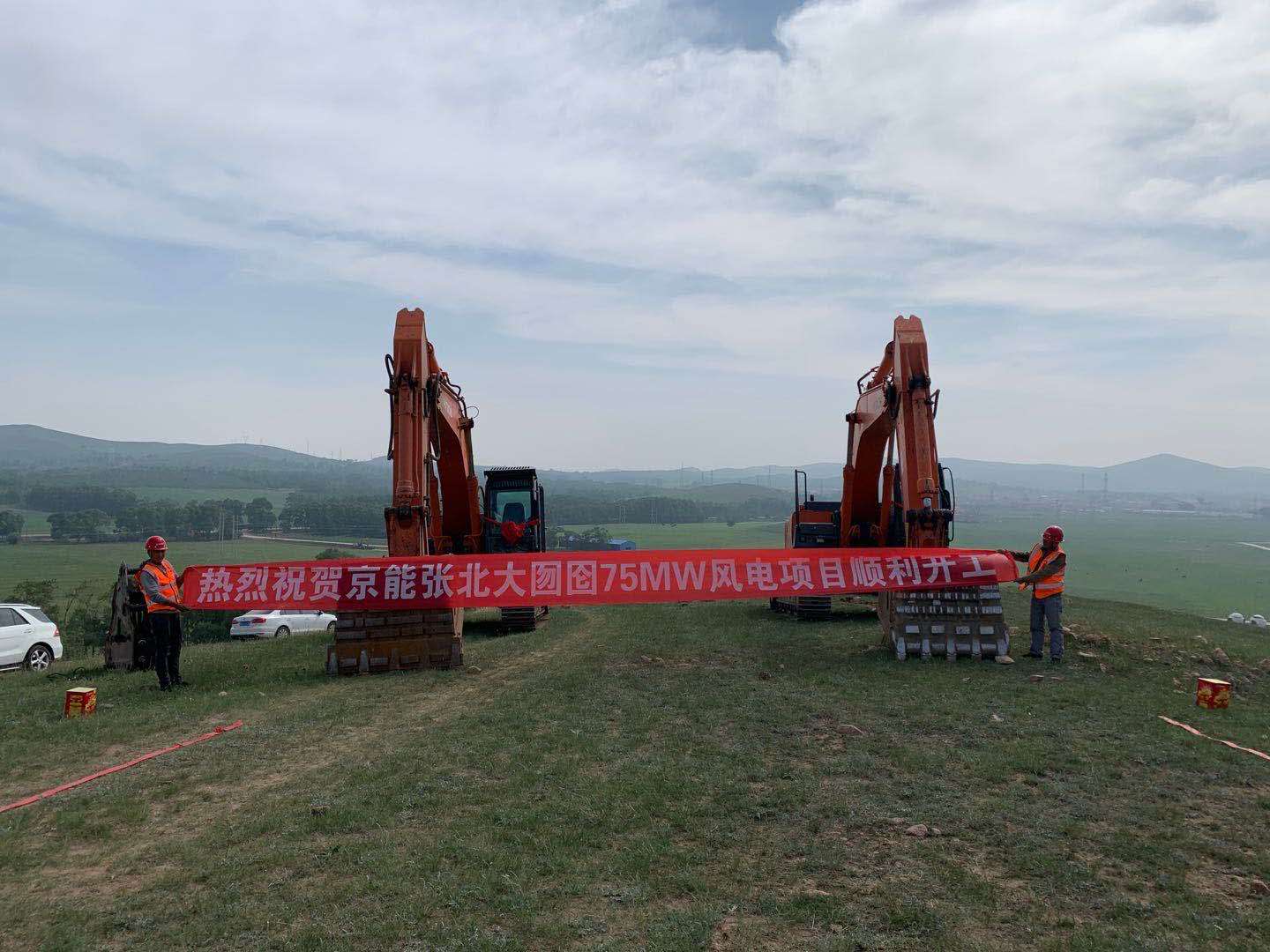 七月的张北坝上草原,,,,,,,天蓝欲滴,,,,,,,碧草如翠。。。。。7月17日,,,,,,,在集团清静台的鼎力大举支持下,,,,,,,通过北京分公司工程部全体员工的同心协力,,,,,,,北京分公司张北大囫囵75MW风电项目正式开工建设。。。。。相继开展风机基础浇筑和风机装置、集电线路和送出线路的建设、升压站的建设等事情。。。。。