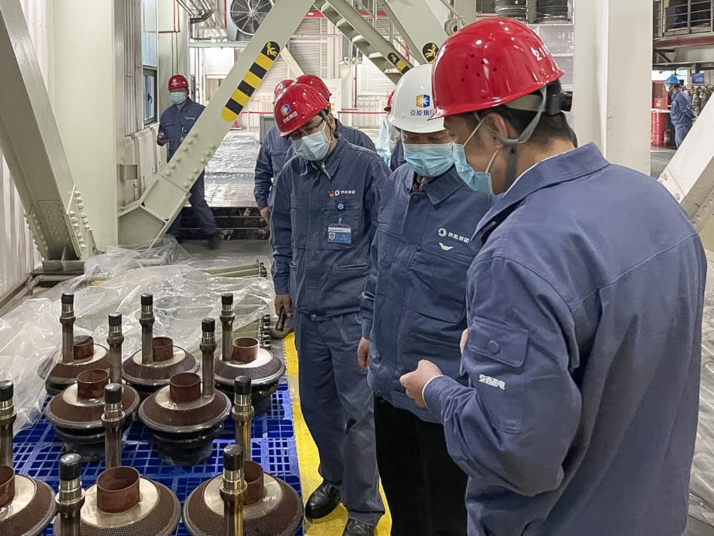 4月21日,,,,,,,bg大游清洁能源副总司理赵志刚一行到京西热电1号燃机磨练现场调研清静、环保、质量、疫情防控事情。。。。。。京西热电党委书记、执行董事杜葆强,,,,,,,党务副书记、总司理马万军,,,,,,,副总司理李永刚陪同调研。。。。。。