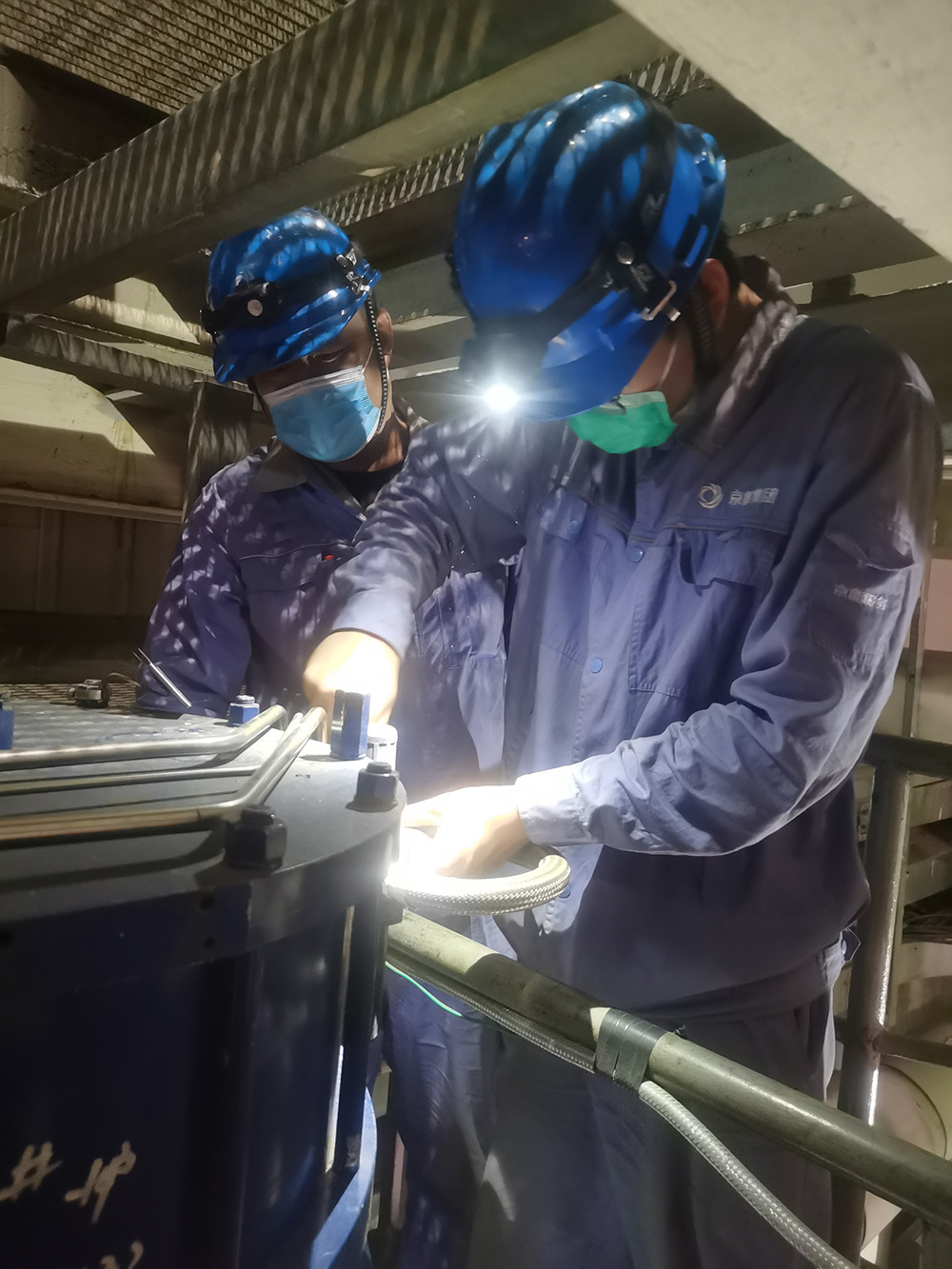 “疫”战之下,,,许多事情按下暂停键。。。。。而京丰的事情却刻禁止缓。。。。。生产现场种种管道“森林”、大巨细小的装备中,,,忙碌的身影随处可见。。。。。一边是烤把加热的呼呼声,,,一边是拧紧螺母的叮咚声,,,口罩遮住了他们的面目,,,心无旁骛的眼神注视向前,,,背上有汗,,,脸上有痕。。。。。热火朝天的磨练事情在严酷落实疫情防控步伐的同时,,,清静有序地举行着。。。。。