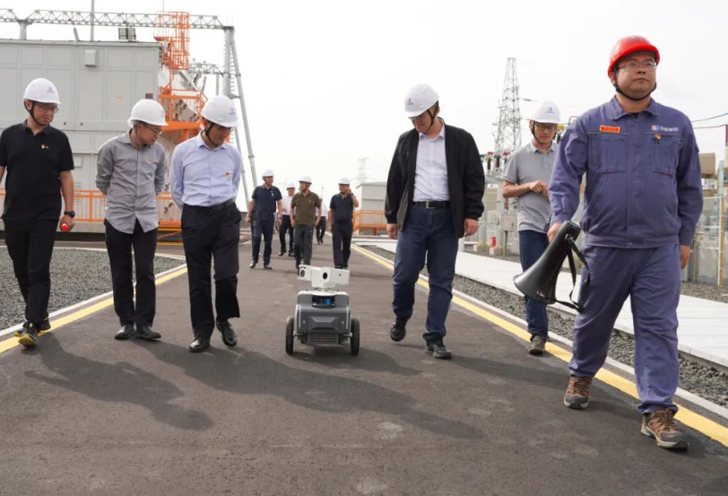 在康保风电场,,,与会职员相继旅行了变电装备区、“四合院”生涯区及风电机组群,,,近距离感受智能巡检机械人、风力发电机组的景物同塔和混塔手艺等各项立异效果。。。。。