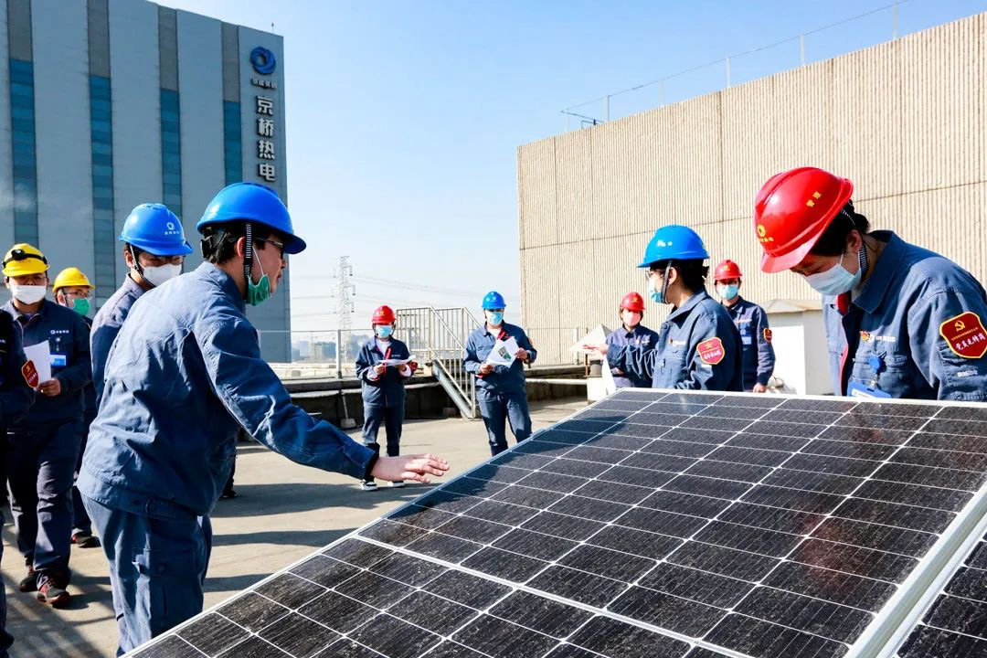 京桥热电团支部连系公司新完工的漫衍式屋顶光伏项目,,,,,,组织青年员工开展“传承雷锋精神 助力绿色生长”的屋顶光伏现场教育活动。。。。。。