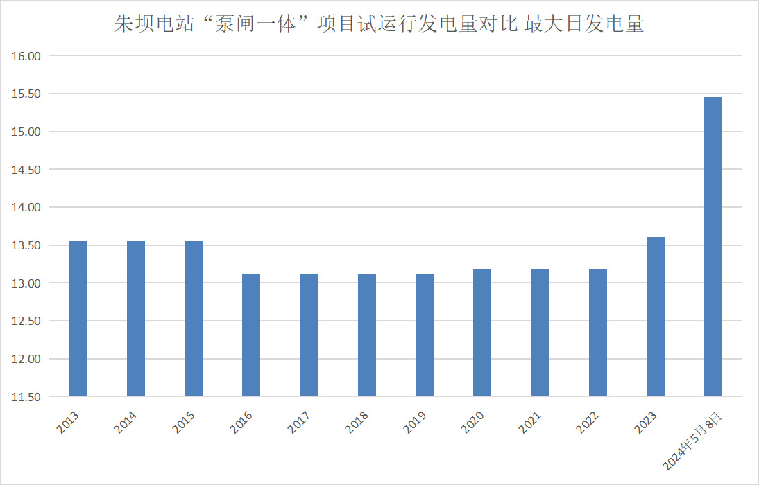 朱坝电站“泵闸一体”项目投入试运行后,,,,,,,5月8日发电量超投产10年来最高日平均发电量,,,,,,,创历史新高。。。。面向未来,,,,,,,西南分公司将认真总结履历,,,,,,,进一步优化设计和提升项目治理水平,,,,,,,为后续刷新事情提供有益借鉴,,,,,,,为“党建+双碳”使命目的的实现汇聚实力。。。。
